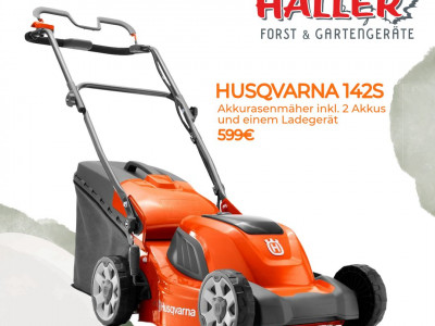 Zum Herbstfest präsentiert Haller Forst & Gartengeräte den Husqvarna 142S Akkurasenmäher zum Sonderpreis von 599 € – inklusive zwei Akkus und einem Ladegerät.